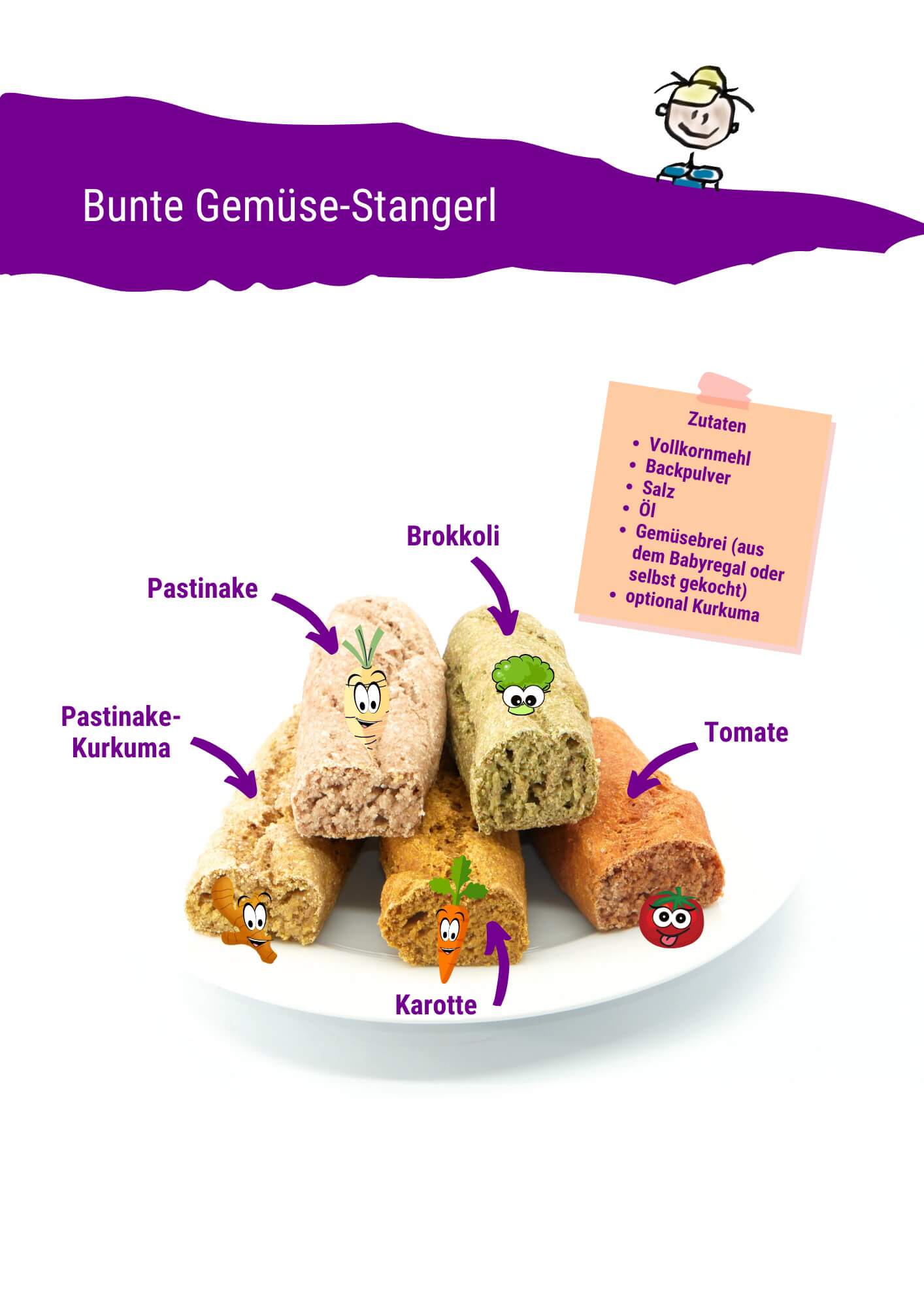 Außerdem enthalten alle ebooks jede Menge Tipps, wie Sie Ihrem Kind die Speisen (und das Gemüse) schmackhaft machen können… auch, wenn es natürlich keine Erfolgsgarantie gibt. Auch die kleinen Figürchen mit großen Augen, mit denen ich die Rezepte verziert habe, sollen dafür sorgen, dass kleine Kinder Gefallen an den Bildern finden und das Interesse geweckt wird. Gleiches gilt für die Kinder-Spezialnamen, Kinder-Spezialargumente und Kinder-Storys, die in den verschiedenen eBooks enthalten sind. Interesse und Neugier hilft dabei, dass die Kleinen eher bereit sind Neues zu probieren.