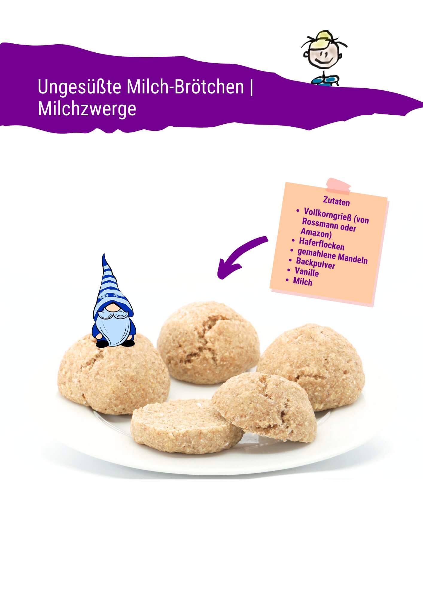 Bei einer Milchzuckerunverträglichkeit können Sie eventuell enthaltene Milchprodukte durch laktosefrei Varianten ersetzen. Bei einer Milcheiweißallergie reicht das nicht aus. Insbesondere die Müsli-Rezepte und Brotaufstrichen enthalten Milchprodukte, die Sie bei einer Milcheiweißallergeie durch vegane Alternativen oder spezielle Pre-Milch ersetzen können. Hier sollten Sie sich aber gut auskennen oder zusätzlich beraten lassen, damit Ihr Kind trotzdem alle benötigten Nährstoffe bekommt.